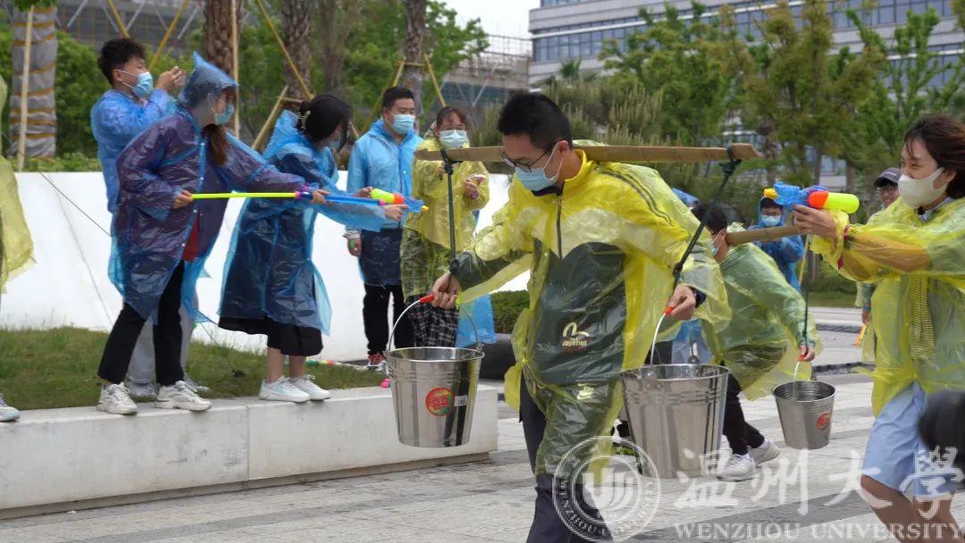 本次活动通过设置分组游戏比拼环节,将“挤”时间的理念贯穿活动全程,挑水、跳绳、拧毛巾,同学们在游戏过程中拼命守护的每一滴水都象征着被“挤”出的时间,最终根据“挤”出时间的排名可以兑换“书菜盲盒”。