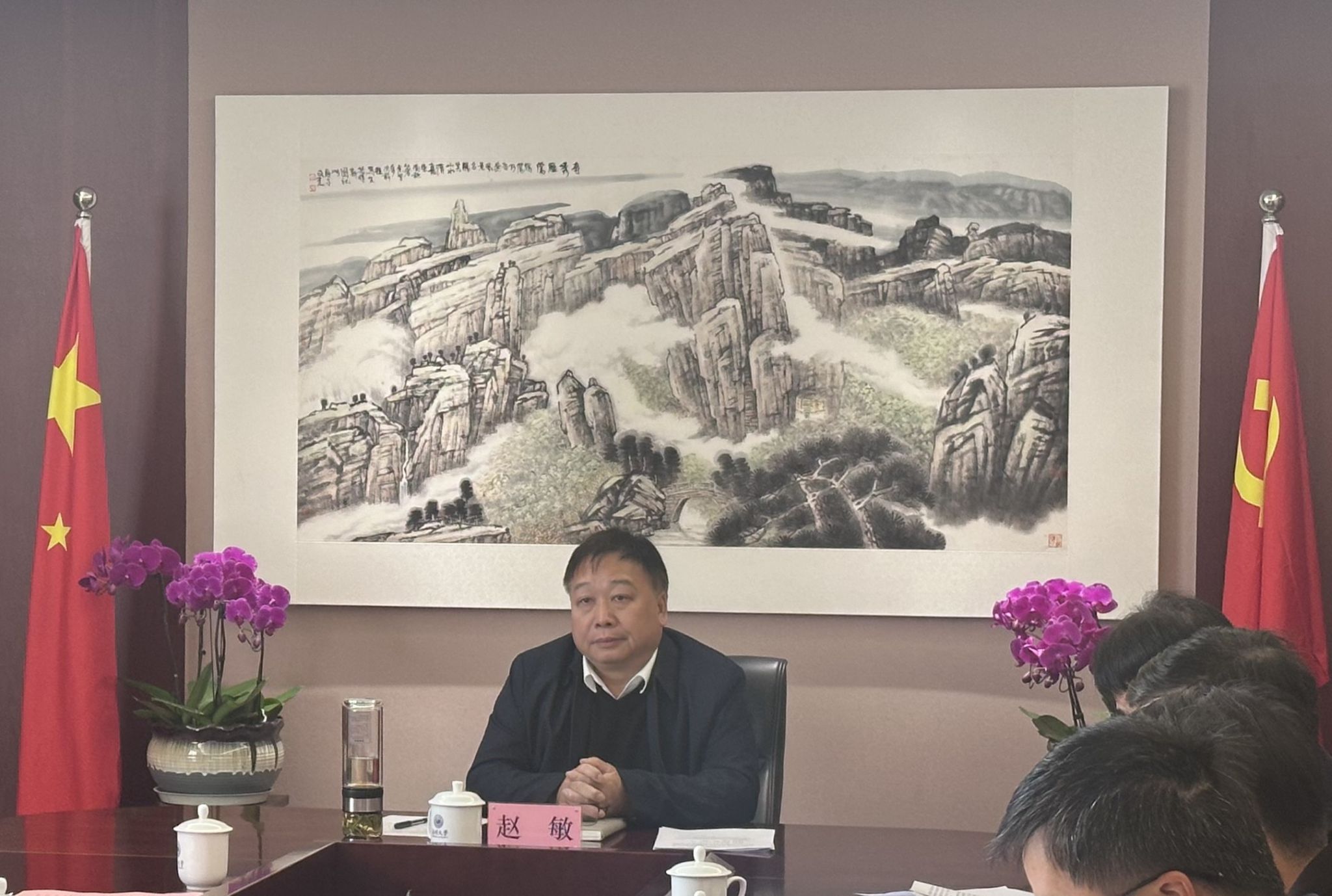 1月7日,泥巴影视 党风廉政建设和意识形态建设工作分析会、泥巴影视 领导班子专题民主生活会在泥巴影视 南校行政楼910会议室召开。泥巴影视 校长赵敏、泥巴影视 党总支书记黄文浩、执行院长吴明格、副书记赵崇峰参加会议。徐和昆教授,李志红、章城副院长列席。会议由副书记赵崇峰主持。